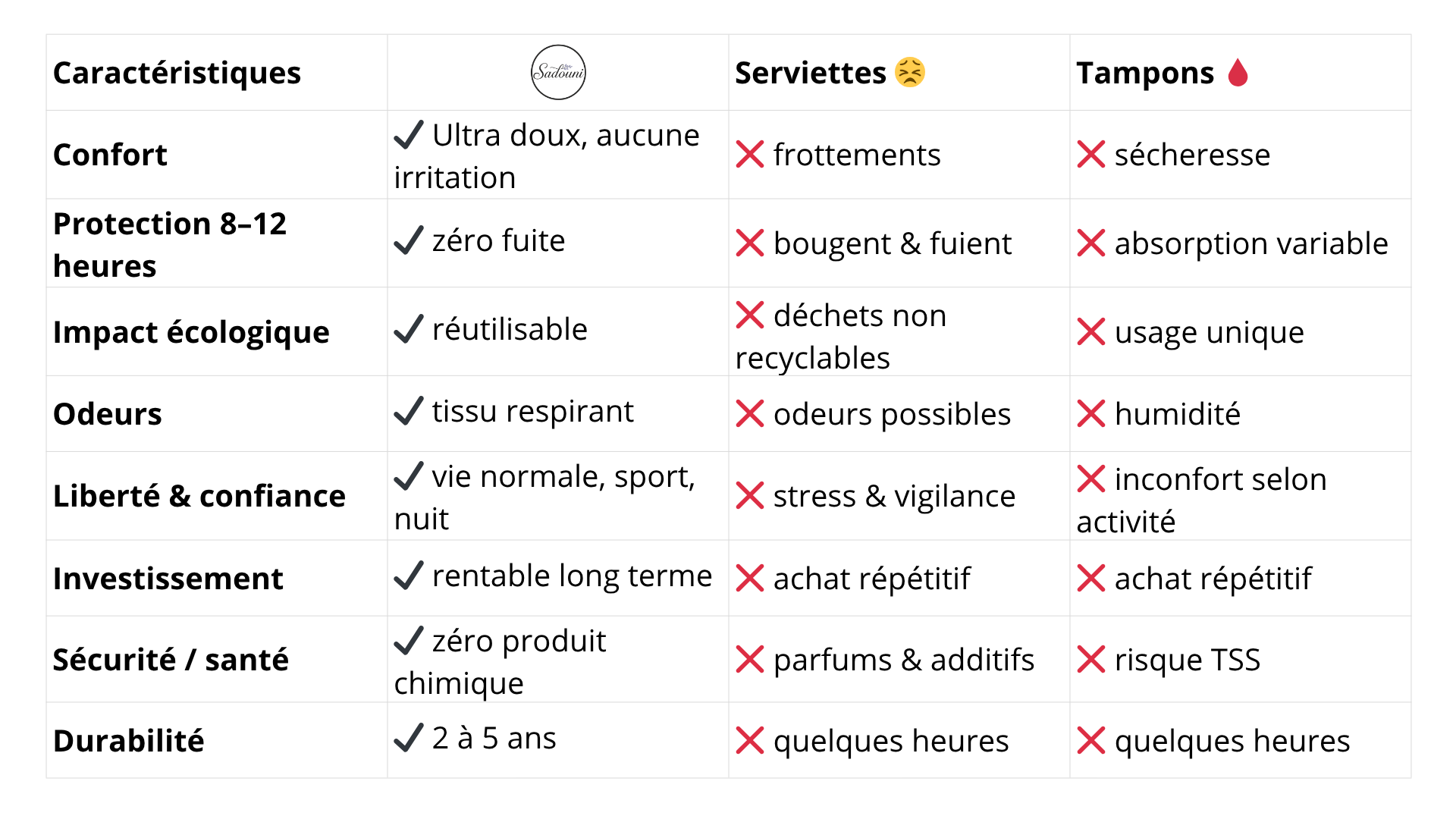 “Les culottes menstruelles Sadouni changent la vie : confortables, écologiques et sans produit toxique.” -